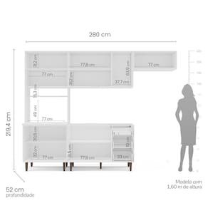 Medida de cada item (A x L x P): Paneleiro/Torre Quente: 219,4 x 80 x 52 Balcão: 84 x 120 x 50,5 Aéreo: 67 x 120 x 36,5 Basculante: 33,5 x 80 x 36,5