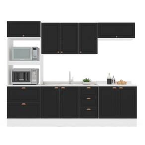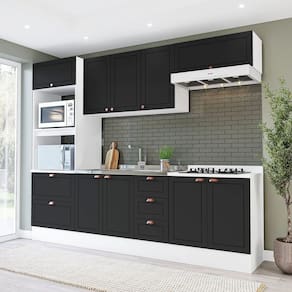 A Cozinha Pérola Completa possui 5 peças com altura de 219,4 cm largura de 270,2 cm e profundidade de balcão de 52 cm. Com portas e gavetas em MDF usinadas em baixo relevo, possui estilo Americano e design contemporâneo, funcional e prático para seu dia a dia. Seus puxadores dos módulos inferior são no formato de concha. E na parte superior são modelo pontual, ambos na cor cobre. Possui dobradiças 35mm Slide On (sistema de amortecimento anti batida) e na porta basculante possui além das dobradiças Slide On pistão para proporcionar uma maior abertura. Acompanha rodapé para fechamento.