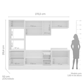 Medida de cada item (A x L x P): Torre Quente: 219,4 x 70,2 x 52 Balcão: 84 x 120 x 50,5 Aéreo: 67 x 120 x 36,5 Basculante: 33,5 x 80 x 36,5 balcão 84 x 80 x 50,5