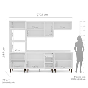 Medida de cada item (A x L x P): Torre Quente: 219,4 x 70,2 x 52 Balcão: 84 x 120 x 50,5 Aéreo: 67 x 120 x 36,5 Basculante: 33,5 x 80 x 36,5 Balcão: 84 x 80 x 50,5