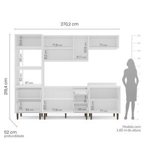 Medida de cada item (A x L x P): Torre Quente: 219,4 x 70,2 x 52 Balcão: 84 x 120 x 50,5 Aéreo: 67 x 120 x 36,5 Basculante: 33,5 x 80 x 36,5 Balcão: 84 x 80 x 50,5