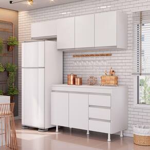 Cozinha Planejada Lux 3 Peças mdf Com Balcão Gabinete Tampo 120cm 3 Gavetas Branco - Abmaza
