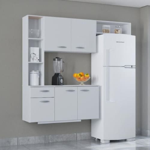 Alem do design atraente, a Cozinha Suspensa Com Balcao Isis e pratica. Possui multiplos compartimentos e gavetas, ideal para organizar utensilios, alimentos e demais itens de cozinha, mantendo tudo ao alcance das maos. A instalacao suspendida e uma grande vantagem, permitindo um aproveitamento inteligente do espaco, alem de facilitar a limpeza do piso, garantindo assim um ambiente mais higienizado e agradavel.