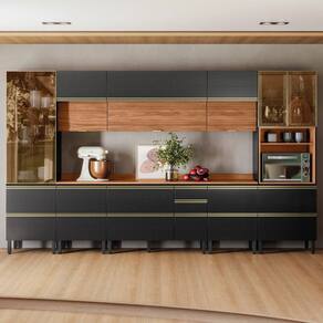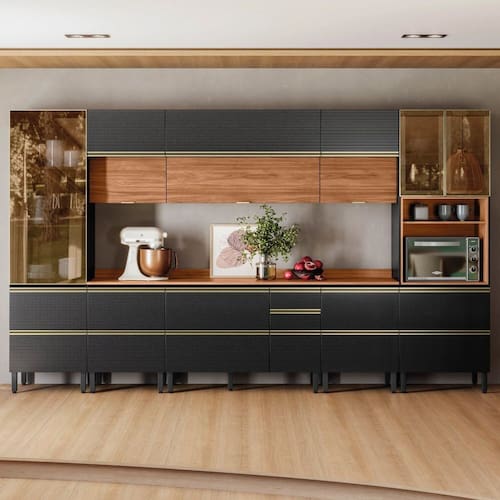 Em um lar, a cozinha é mais do que um espaço para cozinhar — é o coração das memórias, onde aromas e risadas se entrelaçam. Nossa nova linha de cozinhas moduladas de alto padrão, produzida em MDF com acabamento Textura Prime TX, foi pensada para transformar esse espaço em um cenário de sofisticação e praticidade. Acabamento da Prateleira: Pintura Escala de Brilho da Prateleira: Fosco Acabamento da Gaveta: Pintura Texturizada UV Escala de Brilho da Gaveta: Fosco Material do Puxador da Gaveta: Metal Acabamento da Porta: Pintura Texturizada UV Escala de Brilho da Porta: Fosco Material do Puxador da Porta: Metal Acompanha Rodapé Decorativo: Não Acompanha Tampo: Sim Altura dos Pés: cm Ambiente Principal: Cozinha Balcão Suporta Pia: Sim codigo_ean: 7900288187529 Complexidade da Montagem: Alta: deve ser montado por um montador especializado Cor: Nogueira/Carbono Prime Cor do Produto: Nogueira/Carbono Prime Cor Flex: Não Cor Interna: Nogueira Escala de Brilho: Fosco Espessura do Material da Estrutura: 15 mm Espessura do Tampo: 20 mm Gaveta com Chave: Não Informações Complementares: As cores do produto podem sofrer variações de tonalidade de acordo com as configurações do seu dispositivo. Imagens meramente ilustrativas. Itens para decorar o produto e o ambiente não acompanham o produto. Caixa revestida por plástico termoencohível e p Itens Inclusos: 1 Cozinha Completa, Kit Ferragem e Manual de Montagem Linha ou Coleção: Proença Manual de Especificação Técnica: https://product-hub-prd.madeiramadeira.com.br/719864448/documents/28d5e3ab-f163-4ca0-9682-c78eddff0b123038051302817513958502545.pdf Manual de Montagem e Instalação: https://product-hub-prd.madeiramadeira.com.br/719864448/documents/e440ff4f-c514-4d7d-9d5a-7d29fb52ae7c303804930281751395836877.pdf Marca: Demóbile Material da Corrediça: Alumínio Material da Dobradiça/Corrediça da Porta: Metálica Material da Gaveta: MDF Material da Porta: MDF Material da Prateleira: MDF Material do Fundo: HDF Material do Tampo: MDF Medida de cada item (A x L x P): Cristaleira (218,5 x 60 x 52) / Balcão (93 x 60,1 x 52) / Armário Aéreo (72 x 60 x 52) / Balcão Pia (84 x 119,4 x 52) / Tampo Balcão Pia (9 x 119,5 x 52) / Armário Aéreo (72 x 120 x 52) / Paneleiro (218,5 x 70 x 52) modular: Sim Montagem Flex: Não Necessita Montagem: Sim O Balcão Acompanha Pia: Não Origem do Produto: Nacional Peso: 304,44 kg Peso Máximo por Gaveta: 10 kg Peso Máximo por Prateleira: 10 kg Possui Pés: 21 Possui Portas: Sim Possui Prateleiras: Sim Possui recorte para Cooktop: Não Possui Vidro: Sim Produto Montado: Sim Recomendações de Uso, Manutenção e Limpeza: Higienizar com flanela limpa e seca. Sistema de Montagem: Parafusos e cavilhas. Suporta Até (kg): 284 kg Tamanho Indicado da Pia: 120CM Tipo de Corrediça da Gaveta: Metálica Telescópica Tipo de Dobradiça da Porta: Soft close Tipo de Dobradiça/Corrediça da Porta: Soft Close Tipo de Puxador da Gaveta: Externo Tipo de Puxador da Porta: Externo