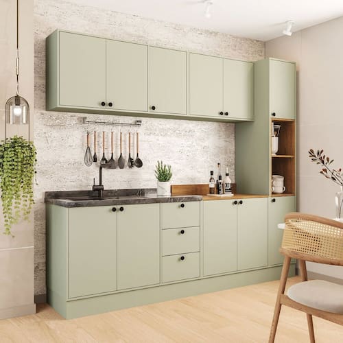 A Cozinha Rubi Yescasa é a escolha perfeita para quem busca sofisticação e praticidade no dia a dia. Com puxadores ponto que trazem um toque elegante e moderno, ela conta com acabamento em pintura UV, garantindo maior resistência, durabilidade e brilho às peças. Seu amplo espaço de 236,8 cm de largura, 214 cm de altura e 49 cm de profundidade oferece organização inteligente para todos os utensílios. O modelo ainda inclui paneleiro, ideal para guardar eletrosportáteis, balcão com tampo, balcão com espaço para pia e armários aéreos. Completa e funcional, essa cozinha une design, qualidade e praticidade para transformar o coração da sua casa. Acabamento da Prateleira: Pintura Escala de Brilho da Prateleira: Semi-Fosco Acabamento da Gaveta: Pintura Material do Puxador da Gaveta: Plástico Acabamento da Porta: Pintura Escala de Brilho da Porta: Semi-Fosco Acompanha Tampo: Sim Ambiente Principal: Cozinha Balcão Suporta Pia: Sim codigo_ean: 7900288239891 Complexidade da Montagem: Alta: deve ser montado por um montador especializado Cor: Verde Oliva Cor do Produto: Verde Oliva Cor Interna: Verde Oliva Escala de Brilho: Semi-Fosco Gaveta com Chave: Não Itens Inclusos: 1 Cozinha Completa, Kit de Ferragens, Manual de Montagem e Termo de Garantia Linha ou Coleção: Rubi Manual de Montagem e Instalação: https://product-hub-prd.madeiramadeira.com.br/488442366/documents/7096ccef-f86b-4feb-adc4-8a64e11f2d923206054622417580250747259.pdf Marca: Yescasa Material da Corrediça: Metálica Material da Dobradiça/Corrediça da Porta: Metálica Material da Gaveta: MDP Material da Porta: MDP Material da Prateleira: MDP Material do Tampo: MDP Material dos Pés: MDP Medida de cada item (A x L x P): Balcão 3 gavetas (81cm x 120cm x 49cm); Aéreo 3 portas (59cm x 120cm x 29cm); Aéreo Basculante (35,7cm x 80cm x 29cm); Paneleiro (214cm x 36,8cm x 49cm) modular: Sim Necessita Montagem: Sim O Balcão Acompanha Pia: Não Origem do Produto: Nacional Pés Reguláveis: Não Peso: 127,87 kg Peso Máximo por Gaveta: 5 kg Peso Máximo por Prateleira: 5 kg Possui Pés: Rodapé Possui Portas: Sim Possui Prateleiras: Sim Possui recorte para Cooktop: Não Possui Rodízio: Não Produto Montado: Sim Recomendações de Uso, Manutenção e Limpeza: Utilize um pano macio umedecido com água e sabão neutro, seguido de pano seco. Não utilize produtos químicos ou abrasivos para limpeza, pois estes danificam o revestimento do móvel. Sapatas Niveladoras: Não Sistema de Montagem: Cavilha, Parafuso, Minifix e prego. Acompanha bucha e parafuso para fixação na parede Suporta Até (kg): 30 kg Tamanho Indicado da Pia: 120x49 Tipo de Corrediça da Gaveta: Metálica Telescópica Tipo de Dobradiça da Porta: Simples Tipo de Dobradiça/Corrediça da Porta: Simples Tipo de Puxador da Gaveta: Externo Tipo de Puxador da Porta: Externo