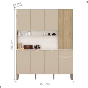 O Armário possui 8 portas e 1 gaveta com corrediças telescópicas destaca-se por sua praticidade e eficiência de uso, podendo ser utilizada como complemento de cozinha.