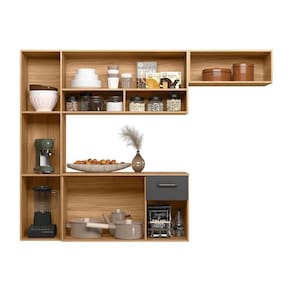 Sua estrutura é reforçada em MDP e também possui acabamento em pintura UV que traz ainda mais durabilidade ao produto. É composta por 6 portas e 1 gaveta, contém 1 prateleira com divisória e 1 nicho para melhor armazenamento dos seus utensílios.