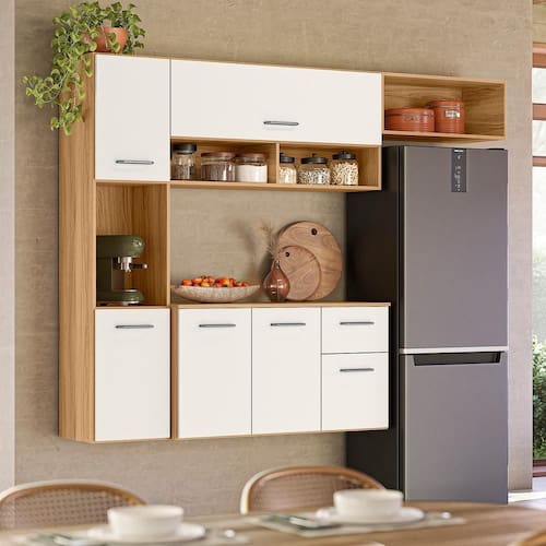 Cozinha Suspensa 6 Portas 1 Gaveta Becca - Bege