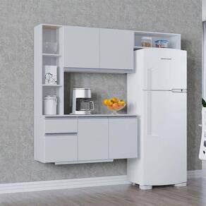 Cozinha Suspensa com Balcão Mel 163 cm Branco Poquema