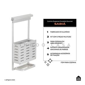 Fabricado em alumínio, o suporte organizador é de fácil limpeza pois não é um material poroso, o que não permite reter cheiros e nem temperatura. Além de sua alta durabilidade, uma vez que é imune à ferrugem, não oxidará em contato com o ar ao longo do tempo.