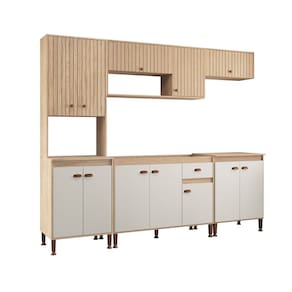Com um design moderno e sofisticado, a Cozinha Modulada Torino é perfeita para quem busca praticidade e estilo na hora de preparar suas refeições. Seus módulos inteligentemente projetados oferecem uma organização impecável, permitindo que você aproveite ao máximo cada centímetro do seu ambiente. Acabamento da Prateleira: Pintura Escala de Brilho da Prateleira: Fosco Acabamento da Gaveta: Pintura Escala de Brilho da Gaveta: Fosco Material do Puxador da Gaveta: ABS Acabamento da Porta: Pintura Escala de Brilho da Porta: Fosco Material do Puxador da Porta: ABS Acompanha Tampo: Não Altura dos Pés: 17 cm Ambiente Principal: Cozinha Complexidade da Montagem: Média: pode ser montado por mais de uma pessoa e/ou necessite de maior conhecimento para montagem Cor: MEL / OFF WHITE Cor do Produto: Mel / Off White Cor Interna: MEL Escala de Brilho: Fosco Espessura do Material da Estrutura: 15 mm Espessura do Tampo: mm Gaveta com Chave: Não Itens Inclusos: PANELEIRO 4 PORTAS, ARMÁRIO 120CM, ARMÁRIO GELADEIRA , BALCÃO DE 70 CM, BALCÃO DE PIA 120 CM Manual de Montagem e Instalação: https://product-hub-prd.madeiramadeira.com.br/909517/documents/e709605c-8882-45ec-983b-1fa7258d8ecc1972503395217162971097269.pdf Material da Dobradiça/Corrediça da Porta: Aço Material da Gaveta: MDP Material da Porta: MDP Material da Prateleira: MDP Material dos Pés: ABS Medida de cada item (A x L x P): 63X220X51,5, 120X58X51,5, 70X32X30, 70X94X51,5, 120X94X51,5 modular: Sim Necessita Montagem: Sim O Balcão Acompanha Pia: Não Origem do Produto: Nacional Pés Reguláveis: Sim Peso: 122 kg Peso Máximo por Gaveta: 3 kg Peso Máximo por Prateleira: 7 kg Possui Pés: 13 Possui Portas: Sim Possui Prateleiras: Sim Possui recorte para Cooktop: Não Possui Rodízio: Não Recomendações de Uso, Manutenção e Limpeza: Antes de limpar recomenda-se que seja retirada toda a poeira com um espanador ou flanela seca para evitar riscos na superfície, após utilize um pano umido em água, macio e limpo. Sapatas Niveladoras: Não Sistema de Montagem: PARAFUSO E CAVILHA Suporta Até (kg): 115 kg Tamanho Indicado da Pia: 120 CM Tamanho Indicado do Tampo: 120X51 Tipo de Corrediça da Gaveta: Telescópica Tipo de Dobradiça da Porta: Simples Tipo de Puxador da Gaveta: Externo Tipo de Puxador da Porta: Externo