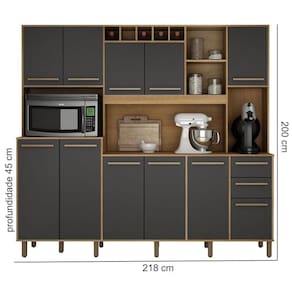 Estrutura: MDPAcabamento: FoscoPortas: 11 Portas, com dobradiças de metálicasGavetas: 02 gavetas, com corrediças TelescópicaPuxador: Sim, em MDF envelopado na cor do produto Pés: Em EPS reguláveisEspaços: Tampo Central: Largura 106 cm x profundidade 49 cm - Nicho Lateral: (Largura 35 x altura 57 x profundidade 45) cm - Nicho micro-ondas: (largura 70x altura 43x profundidade 45) cmLargura: 218,0 cmAltura: 200,0 cmProfundidade: 45,0 cmPeso: 110,25 KgGarantia: 03 mesesInformações Sobre Montagem: Não possuímos serviço de montagem.