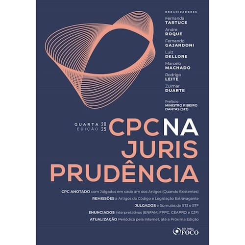 >Sobre a obra CPC na Jurisprudência - 4ª Ed - 2025 Destaques - CPC anotado com julgados em cada um dos artigos (quando existentes); - remissões a artigos do Código e legislação extravagante; - julgados e súmulas do STJ e STF; - enunciados interpretativos (ENFAM, FPPC, CEAPRO e CJF) - atualização periódica pela internet, até a próxima edição Sobre a obra Em vigor desde março de 2016, a Lei 13.105/2015 trouxe para o Brasil um novo Código de Processo Civil, que já passou por diversas alterações legislativas. Passados 7 anos da vigência da nova lei, já é possível apresentarmos interpretação que os Tribunais estão conferindo ao Código. Nesse sentido, a Editora Foco apresenta esta obra, fundamental para a efetiva compreensão da legislação e, também, para aqueles que atuam no foro: trazendo o que já há de jurisprudência a respeito da nova legislação, primordialmente a partir dos Tribunais Superiores (STJ e STF) mas, também, de tribunais intermediários (TJs e TRFs) além de, em alguns casos, julgados decorrentes da Justiça do Trabalho. O objetivo dos organizadores que atuam diariamente no contencioso do processo civil, cada qual em sua respectiva atividade é apresentar ao leitor como os Tribunais estão interpretando o Código. Assim, em cada artigo, parágrafo ou inciso, haverá a reprodução de um julgado isso quando já existir alguma decisão a respeito do tema (sendo certo que há vários dispositivos a respeito dos quais ainda inexistem decisões). E esse julgado será precedido de uma breve explicação a respeito do que foi decidido, para facilitar ainda mais a compreensão do dispositivo em análise. Além disso, quando pertinente, cada artigo será acompanhado por remissão a (i) outros dispositivos do próprio CPC, (ii) outros dispositivos de legislação extravagante, (iii) súmulas (STF e STJ) e (iv) enunciados. No que se refere aos enunciados, a obra traz as conclusões da ENFAM (Escola Nacional de Formação e Aperfeiçoamento de Magistrados), FPPC (Fórum Permanente de Processualistas Civis), CEAPRO (Centro de Estudos Avançados de Processo) e CJF (Conselho da Justiça Federal), sendo conveniente destacar que todos esses encontros contaram com a participação de um ou mais dos organizadores desta obra. Em síntese, este é um trabalho elaborado por quem está participando ativamente dos debates e da construção da jurisprudência do CPC. Assim, esta obra traz: a) índice sistemático do CPC e exposição de motivos do Código; b) redação integral e atualizada do CPC, com remissões a artigos do Código, legislação extravagante, súmulas e enunciados doutrinários; c) quando existentes, julgados em cada um dos dispositivos do Código; d) súmulas selecionadas do STF e STJ, além de Enunciados da ENFAM, FPPC, CEAPRO e CJF; e) razões de veto; f) leis que alteraram o CPC e índice remissivo. O leitor encontrará, portanto, um material completo para estudar o sistema processual e para sua atuação profissional com base no CPC. Enfim, o CPC na jurisprudência. Boa leitura e bons estudos!