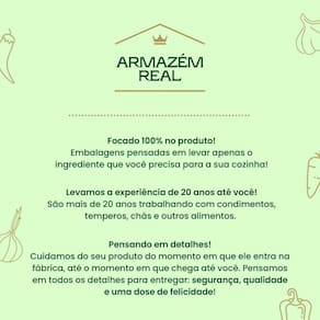 4. Como utilizar o tempero? R: O tempero pode ser utilizado em diversas preparações culinárias, como bolos, biscoitos, pães, carnes, molhos e muito mais. Basta adicionar a quantidade desejada de tempero de acordo com o seu gosto.