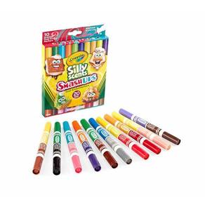 Crayola canetinhas perfumadas laváveis smashups ponta dupla Marcadores de arte crayola silly scents: 10 canetinhas com ponta dupla perfumadas com aroma doce smash ups total de 20 cores. Aromas doces: guloseimas com cheiro doce, como mint chocolate chip, orange dreamsicle, macaron e red velvet cake. Marcadores laváveis: esses marcadores de linha larga são laváveis da pele e da maioria das roupas laváveis Marca: Não Informado