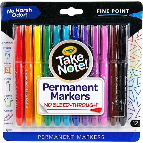 Crayola Take Note 12 Canetas Permanente Markers Ponta Fina