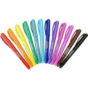Pacote com 12 canetas coloridas.Secagem ultra rápidaCanetinhas de traços finosColore e escreve em qualquer superfície: plástico, madeira, metal, tecido, lona e muito mais.