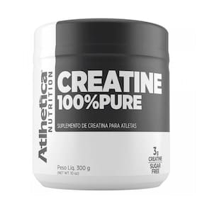 Conteúdo: 01 Creatina 100 Pure 300 Gramas AtlheticaDescrição: Desenvolvida especialmente para melhorar o desempenho esportivo, a Atlhetica Nutrition lançou a sua Creatina 100 Pure para sua linha Pro Series, um suplemento formulado a base da creatina mais pura disponível atualmente. A creatina é um composto natural produzido pelos rins, pâncreas e fígado que desempenha um papel importante na liberação de energia, quando o corpo se move rapidamente ou fortemente. E quando usar como suplemento, como a Creatina 100 Pure, por exemplo, a creatina aumenta a performance muscular. Quando usar de forma consistente após o exercício, a creatina acelera a recuperação dos danos causados pelo exercício físico. E, quando usar antes do treino, ela é capaz de aumentar os níveis de Atp (trifosfato de adenosina), a sua principal fonte de energia durante o exercício pesado ou de longa duração. Portanto, usar a Creatina 100 Pure da Atlhetica Nutrition vai lhe proporcionar ganhos melhores, resistência à fadiga física e muscular, e uma melhor/maior recuperação.Benefícios: Combina 3 aminoácidos: glicina, arginina e metionina, Melhora o ganho de massa muscular, Melhora a recuperação no póstreino.Sugestão de Uso: Tome 3g de Creatina 100 Pure diluída em 200ml de água (ou com o seu shake de proteína), uma vez por dia. Quanto a quando tomar, o timing é fundamental. O momento ideal para tomar creatina é imediatamente após o treino. Tomar creatina antes do treino pode causar cãibras, pois ela age como uma esponja transportando água na corrente sanguínea a partir dos tecidos ou músculos circundantes.Dispensado da Obrigatoriedade de registro conforme resolução Rdc 27/2010 (Anvisa).