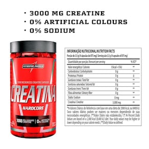 A creatina é um nutriente natural, encontrado principalmente em alimentos de origem animal, como carnes e peixes. Sua síntese é feita de maneira endógena no fígado, pâncreas e rins a partir de alguns aminoácidos como glicina, arginina e metionina. O armazenamento da creatina é fundamental para a produção da energia usada na contração muscular, cerca de 95% de creatina corporal está armazenada no músculo esquelético sob forma livre e fosforilada, como a creatina fosfato (PCr). Derivada de aminoácidos, a creatina está relacionada com a energia muscular. Creatina Hardcore Integralmédica contribui para o desempenho físico de atletas que praticam exercícios físicos repetitivos de alta intensidade e curta duração.