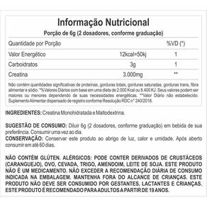 Creatina Monohidratada Micronizada e Maltodextrina.