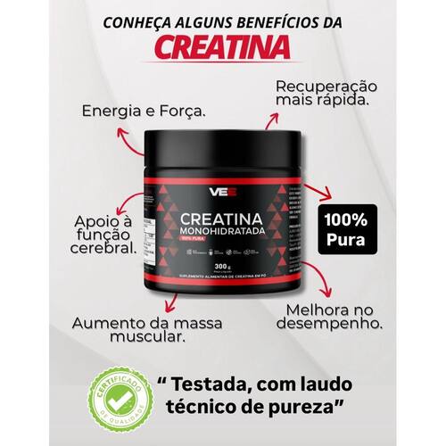 A Creatina Monohidratada VEE é um suplemento alimentar em pó indicado para quem busca complementar a alimentação com creatina de alta pureza. Cada porção fornece 3 g de creatina, e pode ser usada como parte de uma rotina alimentar voltada para exercícios físicos de alta intensidade e curta duração. Sua composição é livre de aditivos desnecessários, sendo uma opção prática para uso diário.