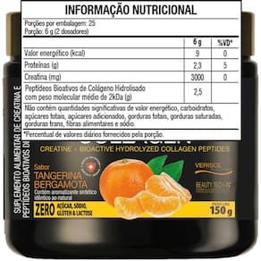Desperte sua beleza de dentro para fora com o Belissima Beauty Creatine Collagen, um suplemento alimentar inovador que combina creatina e peptídeos bioativos de colágeno em pó. Criado para complementar sua rotina de cuidados diários, este produto oferece uma sinergia de ingredientes para apoiar o bem-estar geral. Cada porção é formulada com Creatina e Peptídeos Bioativos de Colágeno VERISOL, reconhecidos por sua contribuição para diversos aspectos do corpo. Com um delicioso e refrescante Sabor Tangerina Bergamota, este suplemento torna a sua suplementação diária uma experiência agradável. Além disso, é a escolha ideal para quem busca uma opção consciente, pois é ZERO Açúcar, Sódio, Glúten e Lactose. O Belissima Beauty Creatine Collagen é o aliado perfeito para quem busca um estilo de vida equilibrado e uma suplementação de qualidade.
