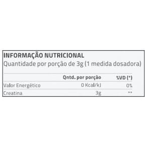 100% Creapure: a mais pura creatina monohidratada do mundo, reconhecida internacionalmente por sua segurança e qualidade. Micronizada: partículas ultrafinas que favorecem a solubilidade e a absorção, proporcionando maior eficiência no consumo. Segurança garantida: livre de impurezas como creatinina, dicianodiamida DCD e di-hidrotriazina DHT . Suporte ergogênico: auxilia na melhora da força, potência e resistência em atividades de alta intensidade e curta duração. Sem aditivos: produto puro, sem adição de corantes, aromatizantes ou conservantes. Vegana e livre de glúten: adequada para diversas estratégias alimentares e restrições dietéticas.