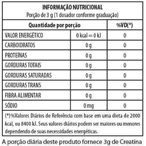 A Creatina Hardcore Reload Integralmédica é um aminoácido que ocorre naturalmente em humanos e também é consumida na alimentação. Age no estoque de energia que os músculos e os outros tecidos necessitam. Quando ingerida adequadamente como creatina exógena, os estoques musculares e cerebrais de creatina se tornam elevados assim como os seus derivados: fosforilado e a fosfocreatina. Especificações Marca: Integralmédica Linha: Creatina Hardcore Reload Recomendações: Conservar este produto ao abrigo de luz, calor e umidade, antes e após o primeiro consumo. Peso: 300g Sugestão de Uso: Misture uma colher de medida a um copo de água (200ml) e tome junto com a refeição INGREDIENTES: Creatina Monoidratada. NÃO CONTÉM GLÚTEN.