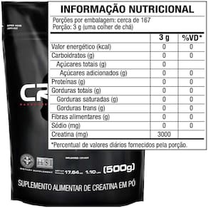 A creatina é um composto produzido pelos rins, fígado e pâncreas e é armazenada, em sua maior parte, nas fibras musculares. Ela também pode ser encontrada em alimentos como carnes e peixes. A cada 1kg de carne vermelha, encontra-se 5g de creatina. O papel primário da creatina nos musculos é fornecer energia para as células musculares durante exercícios de resistência e sprint de alta intensidade 1 . A creatina monohidratada é um dos ativos mais estudados pela ciência nos últimos anos. Além dos benefícios conhecidos para o esporte, seu consumo apresentou efeitos anti-inflamatórios melhorando a saúde de forma geral e a melhoria da performance cerebral por atuar como neuroprotetora, diminuindo a demanda cerebral por oxigênio 2 . A creatine tm da black skull usa tm é um produto composto 100% por creatina monoidratada que irá fornecer mais energia para melhorar o desempenho físico durante exercícios repetidos de curta duração e alta intensidade. Modo de consumo Adicionar 1/2 colher de chá aprox. 3g de creatine em 150ml de água e consumir uma vez ao dia ou conforme recomendação de um profissional da saúde. Importante que seu consumo esteja aliado a uma alimentação balanceada e a prática de exercício físico. Recomendação para adultos acima de 19 anos de idade. Ingredientes Creatina monohidratada. Não contém glúten. Marca: Não Informado
