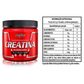 Creatina Hardcore Reload 300g IntegralMedica é um suplemento derivado de aminoácidos. Uma vez dentro das células, é convertida em fosfocreatina e utilizada como reserva de energia, principalmente nas células do músculo esquelético. Incluímos Creatina na dieta, com o objetivo de melhorar a performance e aumentar a massa muscular. Com o uso de Creatina Hardcore Reload IntegralMedica, a célula muscular é hiper hidratada, aumentando seu volume. A célula mais hidratada cria um ambiente favorável para o crescimento dos músculos, a água carrega para dentro das células musculares nutrientes essenciais para a hipertrofia, como proteínas, aminoácidos, glicogênio, entre outros. Quanto mais creatina o músculo carregar, maior também será a quantidade de água em seu interior.