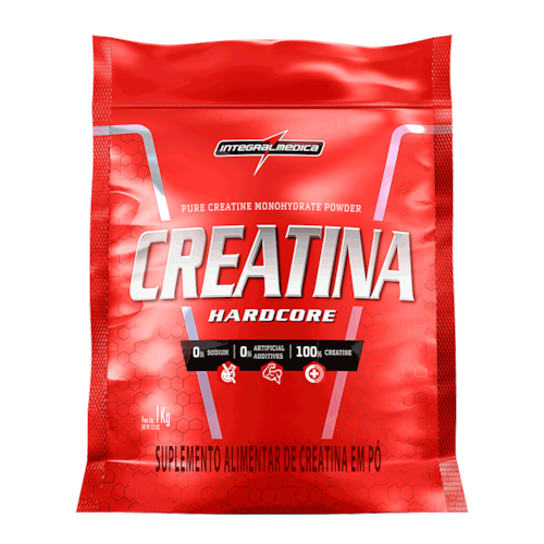 Ganhe volume e massa muscular, aumente sua força e melhore o desempenho e resistência durante os treinos suplementando com Creatina Hardcore Integralmédica. Produto 100% puro, de excelente qualidade. A creatina é um nutriente que pode ser produzido pelo nosso organismo, através do consumo de alimentos de origem animal como carnes e peixes, e também pode ser suplementada na forma de creatina mono-hidratada. Tem importante papel no fortalecimento dos ossos, melhora o metabolismo e diminui a fadiga pós treino. O uso da creatina está altamente relacionado com o aumento do volume muscular e força. Com creatina, a sua resistência á cargas mais pesadas ficará fortalecida possibilitando aumento de cargas para melhores resultados. . Altamente indicada para praticantes de atividade física que estão sempre em busca de evoluir nos treinos. A Creatina Hardcore Integralmédica está disponível na versão pote 150 g e 300 g e Pouch de 1 kg.