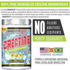 Creatina maxeffect oferece todos os beneficios desse aminoácido para seus músculos terem maiores condições de evolução, armazenando estoques de energia atp para celulas musculares hidratadas e melhor rendimento, contendo fonte monohidratada micronizada pura. A Creatina Micronizada é uma variante da creatina monohidratada obtida através da micronização, um procedimento que quebra a creatina em partículas muito finas, melhorando a solubilidade em líquidos e a absorção pelo corpo. Sugestões de Uso 3g 1/2 scoop ao dia em bebida de sua preferencia ou conforme orientação . Marca: Não Informado