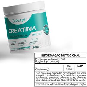 Descrição do Produto A creatina 100% monohidratada Thérapi é um suplemento alimentar, desenvolvida para atletas e praticantes de atividades físicas que buscam melhorar o desempenho e aumentar a força muscular.