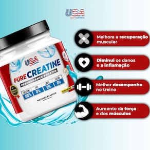 PURE CREATINE PERFORMANCE BOOSTER – USA SPORT NUTRITION Creatina monohidratada pura, com laudo de pureza, desenvolvida para atletas que buscam força, resistência e volume muscular com segurança.