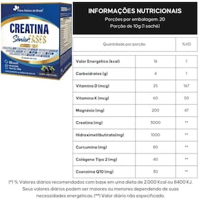 A Creatina Sênior Coenzima Cúrcuma Colágeno Tipo 2 da Flora Nativa do Brasil é um suplemento nutricional especialmente formulado para atender às necessidades de adultos a partir de 19 anos. Com um sabor único de jabuticaba, este produto combina ingredientes de alta qualidade, como Coenzima Q10, Creatina, Curcumina, Hibisco, Magnésio, e vitaminas essenciais, proporcionando um suporte completo para a saúde e bem-estar.