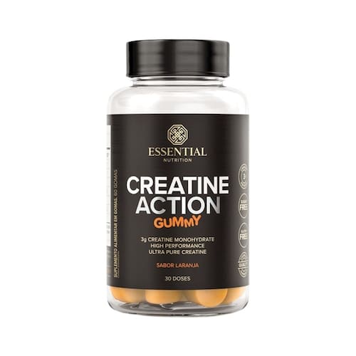 A Creatine Action Gummy Laranja Essential Nutrition é uma creatina monohidratada apresentada em formato de gomas mastigáveis, prática e saborosa, com aroma natural de laranja. É ideal para quem busca incluir a creatina de forma conveniente na rotina, sem necessidade de preparo ou mistura com líquidos.