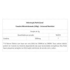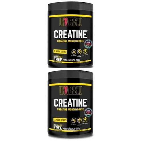 Creatine Monohydrate Combo 200g+200g - Padrão: Único Creatine Monohydrate Combo 200g+200g A Creatina Universal Nutrition é um suplemento de creatina monoidratada indicada para quem busca o aumento da massa muscular e melhor rendimento e força em treinamentos de alta intensidade. A creatina figura entre os principais aminoácidos consumidos por atletas que desejam ganhar músculos e melhorar o desempenho nos treinos, atuando na reposição dos estoques de ATP e, consequentemente, aumentando os níveis de energia muscular. E a Creatina Universal é a melhor e mais pura creatina disponível no mercado, materia prima importada que garante qualidade e a pureza de sua matéria prima. BENEFÍCIOS:- Aumento de Força Muscular;- Ganho de Massa Muscular;- Recuperação Muscular;- Ação rápida no pós-treino. Marca: Não Informado
