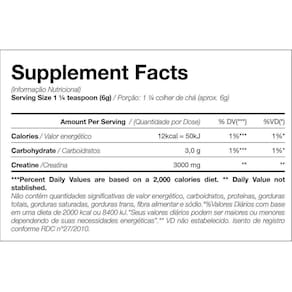 Ingredientes Creatina monohidratada e maltodextrina. Alérgicos: pode conter leite, ovo, amendoim, soja, trigo e seus derivados.