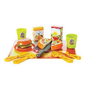 O vamos lanchar é ideal para juntar os amiguinhos e a família para brincarem todos juntos de uma forma muito divertida. O cardápio requintado acompanha 1 pão de hamburguer, 1 queijo, 1 alface, 1 carne, 1 pizza brotinho, 2 pratos, 2 copos, 2 garfos, 2 facas, 2 caixinhas cartonadas, 2 toalhas cartonadas e 1 faca grande. Uma delícia de lanche e brincadeira Contém: 18 peças. nbm9503.00.80 Faixa etária indicada: A partir dos 3 anos. Ean: 3330000072262
