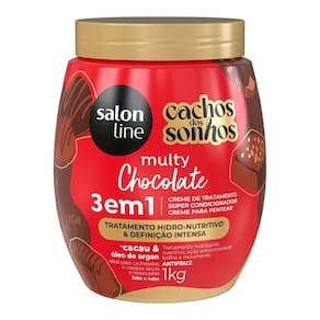 O Creme 3 em 1 Salon Line Cachos Dos Sonhos Multy Chocolate 1Kg é creme de tratamento intensivo, super condicionador e creme para pentear que garante ultra hidratação, definição intensa dos cachos e super controle de frizz. Além disso, é especialmente enriquecido manteiga de cacau, que nutre profundamente, suaviza os fios e combate o ressecamento e óleo de argan, evita a perda de água natural dos fios, promove hidratação e nutrição.