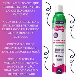 Creme Acidificante Antiporosidade Para Cachos Mais Definidos Creme Acidificante Antiporosidade para Cachos Soft Hair: Solução Completa para Cabelos Saudáveis e Definidos Você está em busca de uma solução eficaz para controlar a porosidade dos seus cabelos cacheados e manter os fios saudáveis e bem definidos O Creme Acidificante Antiporosidade para Cachos Soft Hair é o produto ideal para equilibrar o pH dos seus fios, selar as cutículas e garantir cachos macios, sem frizz e profundamente hidratados. O Creme Acidificante Cachos Soft Hair contém o Óleo de Abacate, de Karité e Vinagre de Maçã que, juntos, reequilibram o pH da fibra do cabelo crespo e cacheado, fazendo com que os fios retenham mais nutrientes e vitaminas resultando em extremo alinhamento da cutícula, brilho, maciez e a melhora significativa no pós definição/finalização do cabelo crespo e cacheado. O Creme Acidificante Cachos Soft Hair está na faixa de pH indicada de 3,0 a 4,0 que atua no fechamento das escamas da cutícula preservando a cor, nutrientes e a saúde dos fios É necessário enxaguar. Indicação de Uso: Cabelos cacheados e crespos A, B e C com danos químicos e mecânicos leves e moderados, com aspecto opaco, quebradiço e sem definição. ANVISA PROCESSO: 25351.106420/2024-25 AFE: 2.01236.1 Benefícios do Creme Acidificante para Cachos Redução da Porosidade: O creme acidificante ajuda a fechar as cutículas dos cabelos, reduzindo a porosidade e protegendo os fios contra danos externos. Cachos Definidos e Brilhantes: Ao selar as cutículas, o creme promove a definição dos cachos e aumenta o brilho, deixando os cabelos com aspecto saudável. Hidratação Profunda: Rico em ingredientes nutritivos, o creme proporciona uma hidratação intensa, essencial para cachos macios e maleáveis. PH Equilibrado: Manter o pH correto dos fios é crucial para a saúde capilar, e o creme acidificante faz isso com maestria, tornando seus cabelos mais fortes e resistentes. Por que a Porosidade Afeta tanto os Cachos A porosidade capilar é um dos principais vilões dos cabelos cacheados, pois compromete a capacidade dos fios de reter umidade. Cabelos com alta porosidade têm cutículas abertas, o que resulta em cachos ressecados, sem forma e propensos à quebra. O Creme Acidificante Antiporosidade Soft Hair age diretamente no fechamento dessas cutículas, garantindo uma estrutura capilar mais alinhada e saudável. Ativos principais O Creme Acidificante Antiporosidade Soft Hair combina ingredientes com a mais alta tecnologia capilar. Entre os componentes principais estão: Óleo de Abacate, de Karité e Vinagre de Maçã Como Usar o Creme Acidificante: Após o uso do Shampoo Cachos Soft Hair ou o de sua preferência, retire o excesso de água dos cabelos e aplique o Acidificante Cachos enluvando mecha a mecha por toda a extensão dos fios substituindo o uso do Condicionador. Deixe agir de 5 à 10 minutos e enxágue. Indicação de uso uma vez por semana ou conforme a necessidade dos fios. ---------------------------------------- Principais Tags de Pesquisa: Acidificação no cabelo cacheado, acidificação capilar cabelo cacheado, acidificação para cabelo cacheado, melhores acidificantes para cabelo cacheado, acidificação cachos, acidificação capilar para cabelos cacheados, acidificante para cabelo cacheado, acidificante cachos, acidificante cabelo cacheado, acidificação cabelo cacheado, melhor acidificante para cabelo cacheado, acidificante capilar cabelo cacheado, acidificante capilar cachos, acidificante capilar para cabelos cacheados, creme Acidificante antiporosidade, porosidade capilar, cachos definidos, controle de frizz, redução de porosidade, hidratação profunda, cabelos cacheados, equilíbrio do ph, cacho poroso