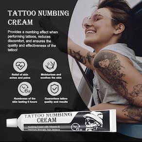 Creme anestésico de tatuagem indolor, creme anestésico para tatuagens extra forte — Para tatuagens, piercings e remoções — Pacote com 3 unidades de 2,12 onças — Efeito anestésico: o creme anestésico de tatuagem especialmente configurado fornece até 6 horas de dormência para aliviar a dor da tatuagem — Uso multiuso: multiuso e de grande capacidade, pode ser utilizado para tatuagens, piercings e depilação, etc. do processo de trabalho - Adequado para todos os tipos de pele: nosso creme anestésico para tatuagens é fácil de aplicar e remover sem deixar marcas ou sensação de oleosidade - Ingredientes seguros: este O creme anestésico de tatuagem é feito com ingredientes de alta qualidade para garantir ingredientes seguros que também não afetam a qualidade e os resultados da tatuagem. Fácil de usar: lave a área a ser tratada, aplique o creme anestésico para tatuagens e embrulhe em plástico por 50 a 60 minutos, espere a absorção terminar, depois limpe o excesso de creme e espere cerca de 20 minutos para obter o melhor efeito anestésico