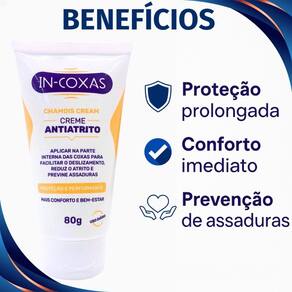 Com o Creme Antiatrito In-Coxas, você pode desfrutar de uma pele mais suave e protegida, prevenindo o desconforto causado pelo atrito constante. Sua aplicação é simples e seu efeito duradouro, tornando-o um item essencial para o seu cuidado pessoal.