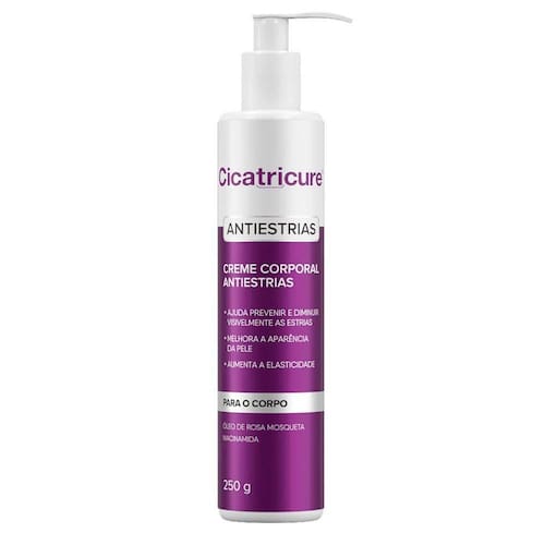Modo de usar: Aplique o creme corporal cicatricure de duas a três vezes ao dia, reforçando nas áreas mais propensas a estrias. Caso seja necessário reaplique o produto.