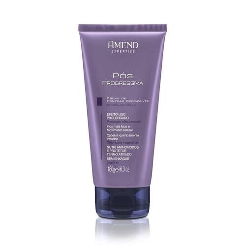 Creme de pentear para cabelos que passaram por processos químicos. Amend Pós Progressiva Creme de Pentear protege da umidade e controla o frizz. Ideal para prolongar o efeito liso em cabelos com escova progressiva. Amend Pós Progressiva Creme de Pentear possui proteção térmica que diminui o impacto causado pelo secador e prancha, além de acelerar a secagem e facilitar a escova. Ainda condiciona os fios, os deixa mais suaves e desembaraçados. Ação Nutri-Amino: aminoácidos que fortalecem as áreas danificadas da fibra, além de nutrir e dar mais força. Benefícios / Resultados: Fios protegidos, macios e desembraçados, muito mais fáceis de manusear e sem frizz. Sugestão de uso: Nos fios limpos e úmidos, aplique por todo o comprimento e pontas. Espalhe bem, sem passar na raiz, e finalize como desejar. Sem enxágue.