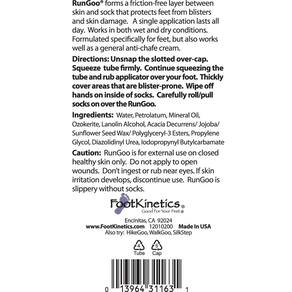 O creme de prevenção de bolhas RunGoo oferece uma barreira de atrito entre a pele e a meia que protege os pés de danos à pele em todos os esportes de corrida. RunGoo adere por muito mais tempo do que qualquer outro produto de prevenção de bolhas porque contém uma alta porcentagem de ceras duras especiais. Estas ceras fornecem uma camada protetora que reduz fricção, calos e bolhas. A maioria dos outros produtos antiatrito e prevenção de bolhas são à base de dimeticona. Elas são adequadas para coxas e peito, mas são muito finas para ficar em pé no ambiente hostil de um sapato e você não pode aplicar o suficiente para durar o dia todo. Além disso, enquanto o RunGoo evita bolhas, também hidrata seus pés para que você possa ter prevenção de bolhas e pés saudáveis. - Prevenção de bolhas de maior duração - Para todos os esportes de corrida - Sem manchas e sem resíduos - Limita a formação de calos - Bom para seus pés