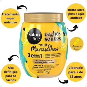 O Creme de Tratamento 3 em 1 é um Creme de Tratamento intenso, super condicionador e creme para pentear. Ele proporciona tratamento super nutritivo, alta definição para os cachos. Além de brilho ultra gloss e ação antifrizz. Ideal para cabelos cacheados e crespos desnutridos e sem brilho. Para + de 12 anos. Fragrância frutal. Não testado em animais. Vegano.