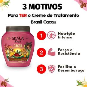 O Creme de Tratamento Skala Brasil Cacau 1000g é a expressão da paixão da marca Skala pelo Brasil e seus ativos naturais. Com uma fórmula que incorpora a autenticidade brasileira, a Skala traz a beleza para todos com valores acessíveis, refletindo ética, disciplina, carinho e transparência. Desenvolvido para revitalizar cabelos fracos e opacos, este creme proporciona uma verdadeira explosão de força e brilho, combatendo o ressecamento e a quebra dos fios. Ideal para quem busca um tratamento capilar vegano e eficaz, este creme é perfeito para incluir na sua rotina de cuidados com os cabelos. Descubra o poder do cacau para transformar seus cabelos, deixando-os mais saudáveis e radiantes.