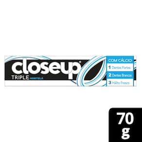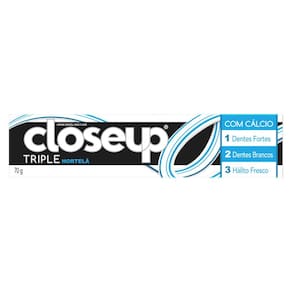 • O Creme Dental Closeup Tripla Proteção Hortelã proporciona dentes 10x mais fortes • Sua fórmula possui tripla proteção: anticáries, dentes brancos e hálito fresco • O flúor bioativo previne às cárie