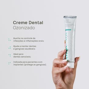 O Creme Dental Ozonizado Sem Flúor é ideal para dentes e gengivas sensíveis, oferecendo proteção natural, sulfatos ou parabenos. Com óleo ozonizado, combate microrganismos e auxilia na recuperação dos tecidos orais, promovendo gengivas e dentes mais saudáveis. Garanta já o seu e tenha uma saúde bucal mais natural e eficaz Creme Dental Ozonizado - sem flúor Formulado com tensoativos extremamente suaves e eficientes que podem ser inclusive por pessoas com dentes e gengivas sensíveis, o Creme Dental Ozonizado tem o propósito de levar os benefícios do ozônio medicinal para a sua saúde Bucal. Todos os ativos foram cuidadosamente selecionados para o desenvolvimento de um produto mais natural, além disso nossa fórmula é totalmente livre de compostos potencialmente tóxicos. Nosso ativo principal, como em todos os nossos produtos, é o óleo ozonizado que auxília no combate à microorganismos e possui propriedades para restabelecer e reparar os tecidos, proporcionando dentes e gengivas mais saudáveis. Principais Ações: - Auxilia no controle de infecções e inflamações orais; - Ajuda a manter dentes e gengivas saudáveis; - Indicada para pacientes com implantes protege as gengivas ; - Ideal para dentes sensíveis. Livre de: - Flúor; - Sulfatos; - Parabenos e triclosan; - Corantes sintéticos; - Matérias-primas derivadas de óleos minerais. Informações Extras: - Prazo de Validade: 3 anos a partir da data de fabricação. Marca: Não Informado